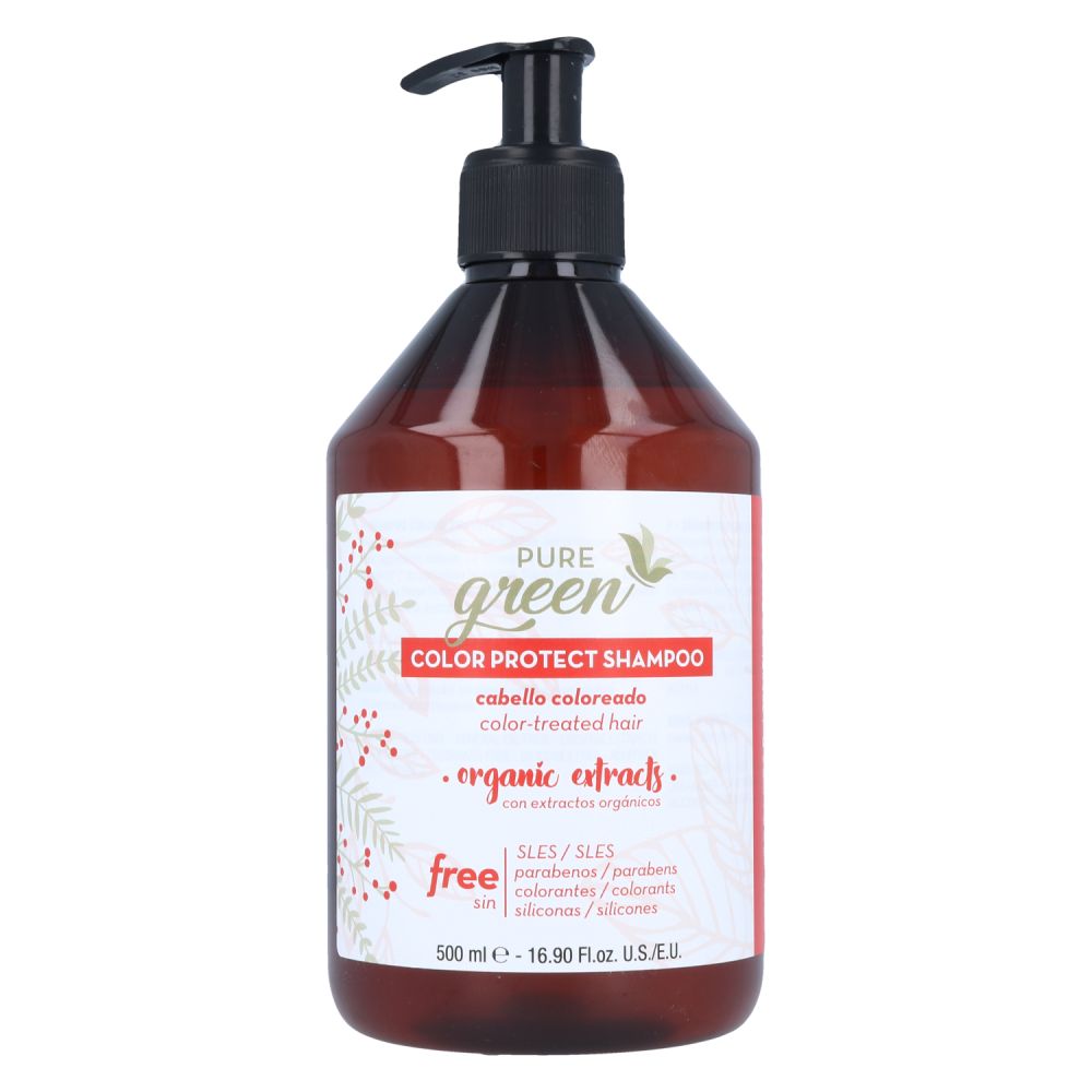 Pure Green Color Protect Shampoo donne brillance et protection aux cheveux colorés.